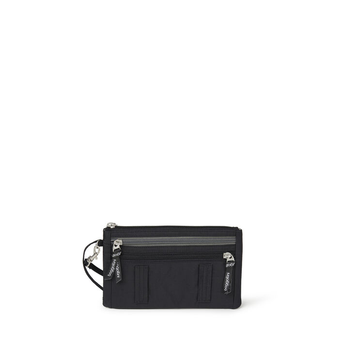 No more fumbling for the right amount (or the right type) of currency thanks to the RFID currency organizer! With multiple pockets and a handy wrist strap, this RFID-protected travel wallet is a smart pick.