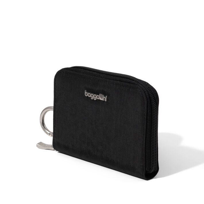 Designed for minimalist moments and everyday errands, this compact case secures your must-have cards in a slim silhouette. With RFID-protected slots and a zippered pocket for the extras, it keeps everything in place, minus the bulk of a traditional wallet.