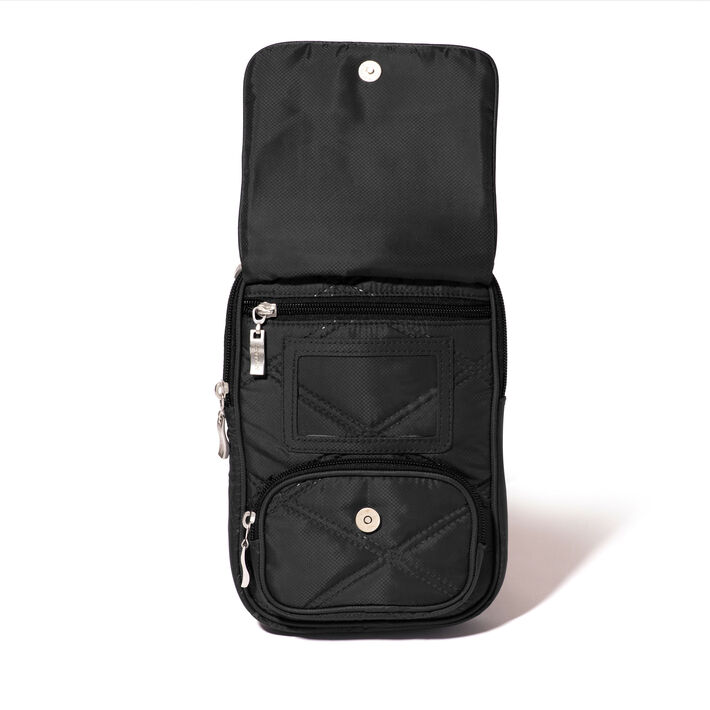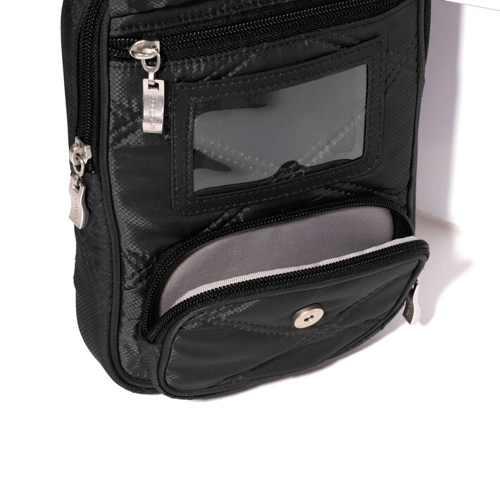 Brilliantly versatile crossbody travel bag with multiple pockets that zip shut to keep contents out of sight. Vertical orientation makes this a smart choice for airport days' stowing your ticket, passport, inflatable neck pillow and lip balm, with room to spare for your cell phone or small tablet.