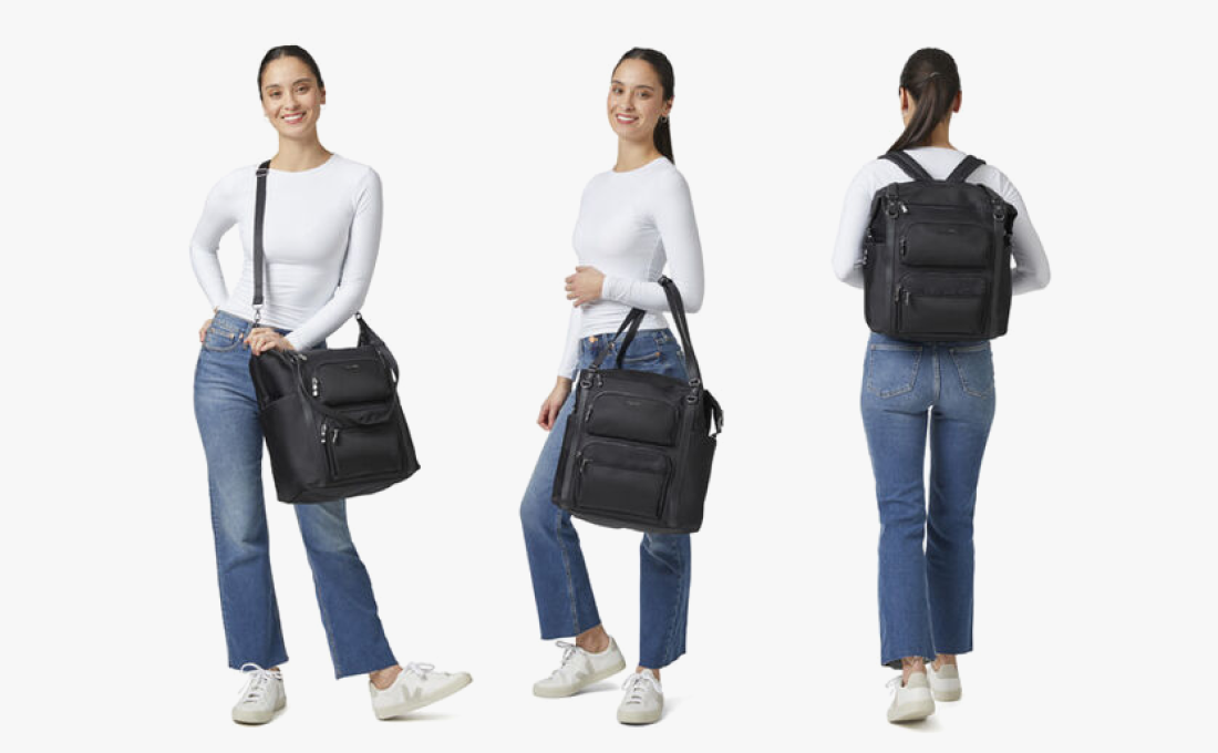 Stylish, smart, and pockets for everything? Sign us up. Everyone’s favorite feature: the convertibility— seamlessly switching from backpack to tote.